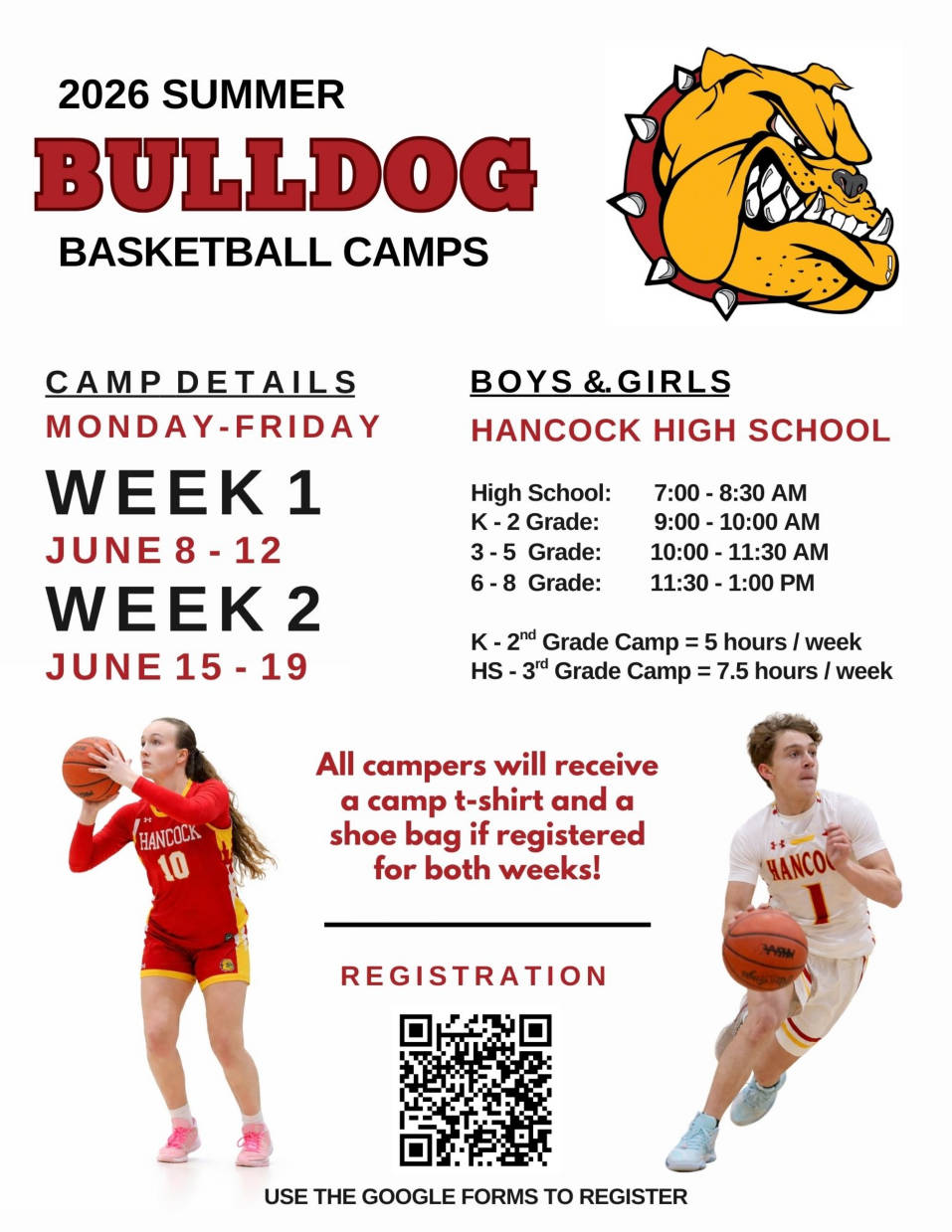 Each camper will receive a Bulldog Basketball t-shirt and if you come to